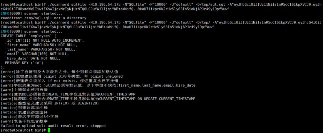 ./scannerd sqlfile -H127.0.0.1 -N"SQLfile" -P"10000" -J"default" -D/root/sqle/sqle/cmd/scannerd/scanners/mybatis/testdata/ -A"eyJhbGciOiJIUzI1NiIsInR5cCI6IkpXVCJ9.eyJhcG4iOiJ0ZXN0MDcyNCIsImV4cCI6MTcyMTcyODU0NywibmFtZSI6ImFkbWluIn0.CojdTvBkr-iN_26tWI-Kr6mMnJt1NIDr-Y3v7m9ySuM"