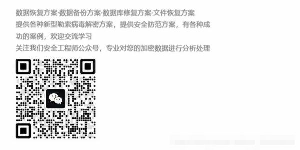 注意!!!千万不要轻易按照犯罪份子要求缴纳赎金,太多案例表明缴纳赎金后犯罪分子不再回复或者变本加厉要求加价的戏码了,与其缴纳赎金去博取犯罪分子的可怜的信誉,不如直接找专业的数据恢复公司,还能够免费根据你的加密情况给你有效的建议。