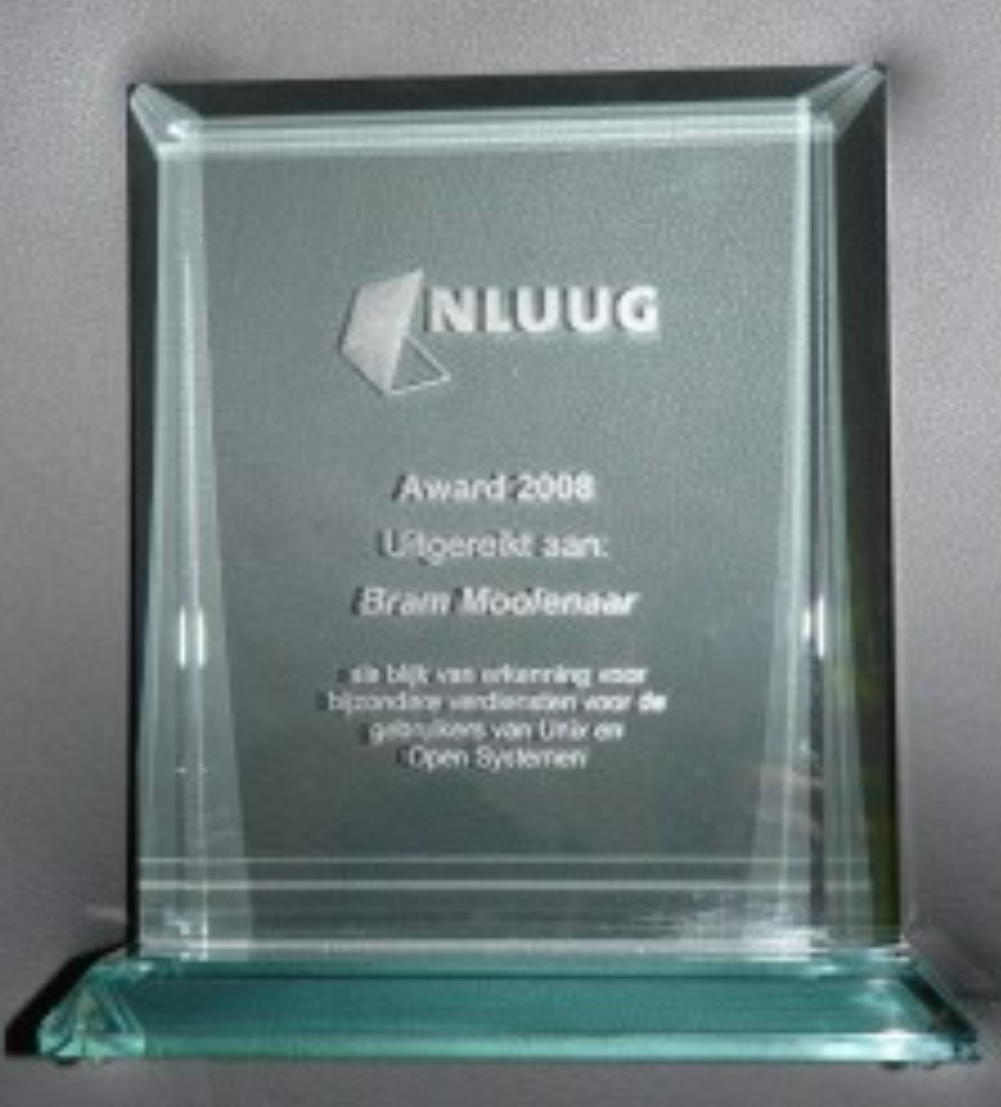 但是,最让 Moolenaar 自豪的还是由 NLUUG 在 2008 年颁发的这个奖项。NLUUG 是荷兰的 Unix 用户团体,今年是他们成立的 40 周年。此前获得该奖项的其他人还包括 Python 之父 Guido van Rossum 和荷兰互联网先驱 Piet Beertema。Moolenaar 在自己的个人主页上记录了对于获奖的喜悦之情。