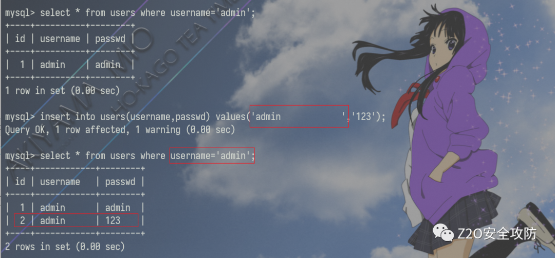 admin (有个空格)或者 (有个空格)admin原理:用户名字段长度>5,所以可以添加空格,而sql语句执行时会将空格忽略。