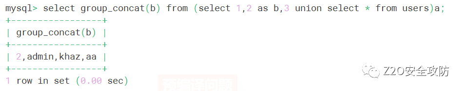 select group_concat(b) from (select 1,2 as b,3 union select * from users)a;