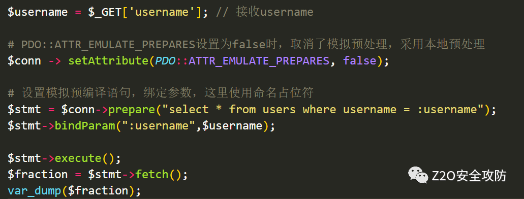 使用模拟预编译,并且没有绑定参数又因为PDO默认可以支持多条SQL执行,所有造成了堆叠注入。