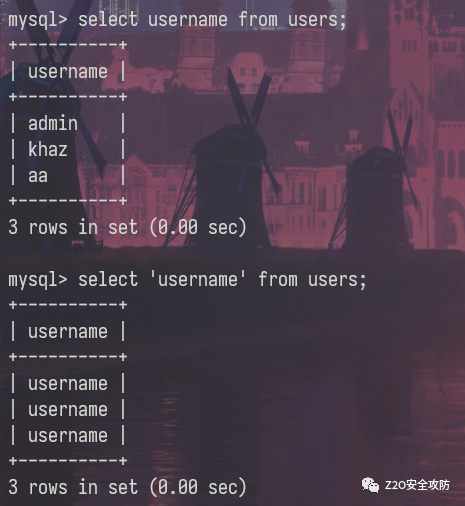 可以看到这些语句"失效了"(没有得到想要的结果),所以在实际开发中,对于这些语句大概率就是进行一个拼接处理,就很可能存在sql注入。