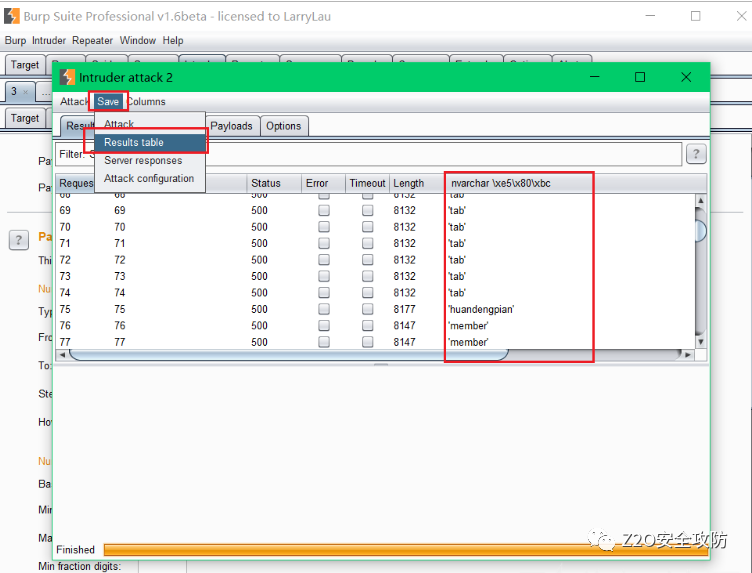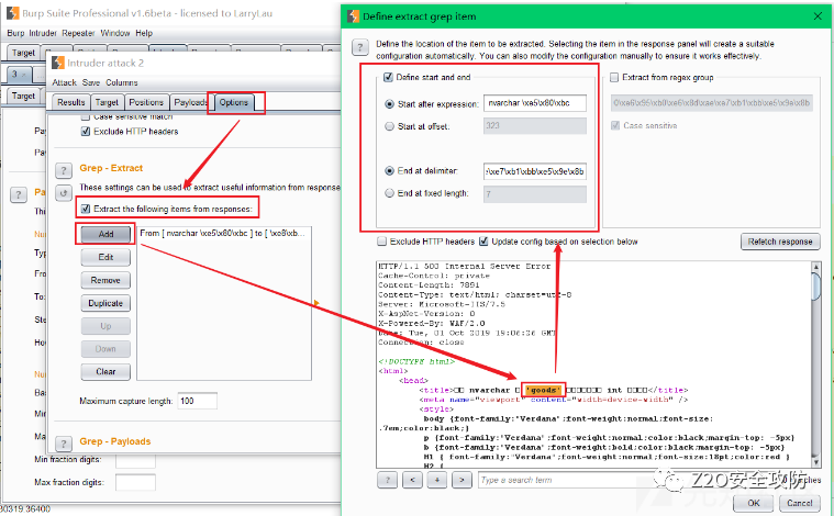 通过不断的遍历数值发现还是存在问题,举个例子,即 1-20、200-209,334-345返回同一个表名,存在大量重复与无序的情况,但可以通过burp中intruder->Grep-Extact功能来解决,操作如下:首先设置好intruder对001-600进行遍历(超过600多后就没什么内容了)
