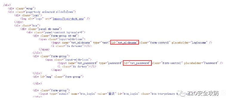 如图,盲猜列名txt_nickname、nickname、txt_password、password