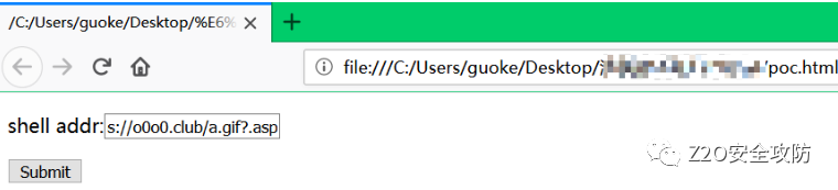 并在自己的服务器上准备好shell(注意过狗),名称为a.gif,然后填入shell地址