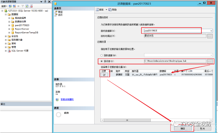 新建数据库,然后通过原设备还原数据