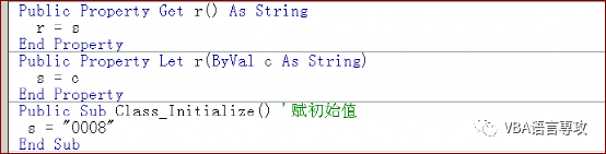 我们知道,给普通变量和对象变量赋值的方式不同,对象变量是使用Set赋值的。对“对象”属性,VBA提供了Property Set来代替构建“普通”属性使用的Property Let。来看一段代码,和前面的比较一下,只是多一个Set。