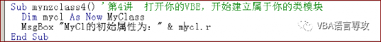 Sub mynzclass4() '第4讲打开你的VBE,开始建立属于你的类模块