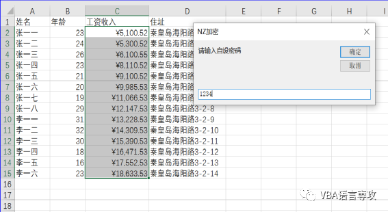 有的朋友会说了:可以隐藏啊,是的,可以隐藏这列,但这是EXCEL的操作,在熟悉VBA后,可以达到更高的层次。更何况如果是隐藏列,当别人打开这个工作簿时可以取消隐藏实现数据的读取。那么,是否可以设置打开工作薄的密码呢?首先,这些数据只是部分不便示人,大部分是可以让别人看的;其次,我强烈建议使用EXCEL表格的学员,不要使用打开工作薄的密码,非常麻烦!