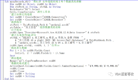 Sub mynzRecords_61() '第61讲 右外连接应用于两个数据表的讲解