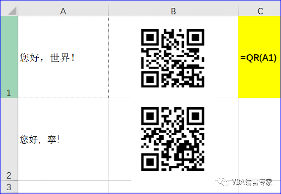 应用二是利用函数在单元格中直接加载二维码,应用的是TestQRCWorksheet.xlsm文件,我们打开这个文件: