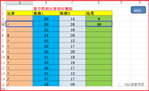 11 工作表中自定义事件的实例讲解,四则运算的自动测验