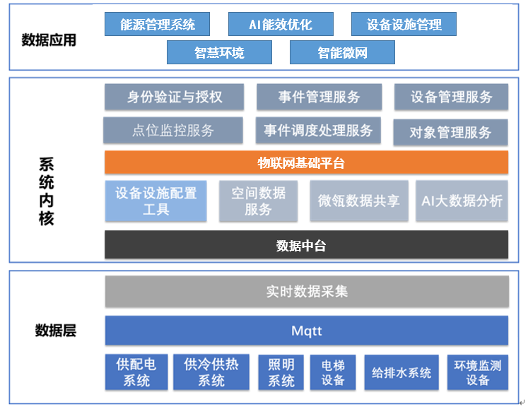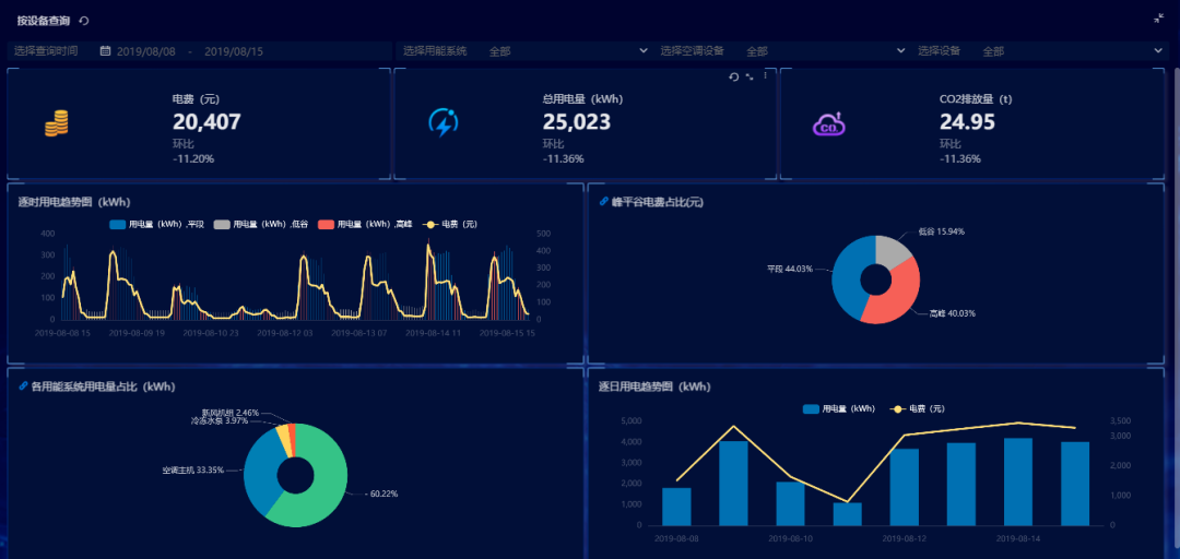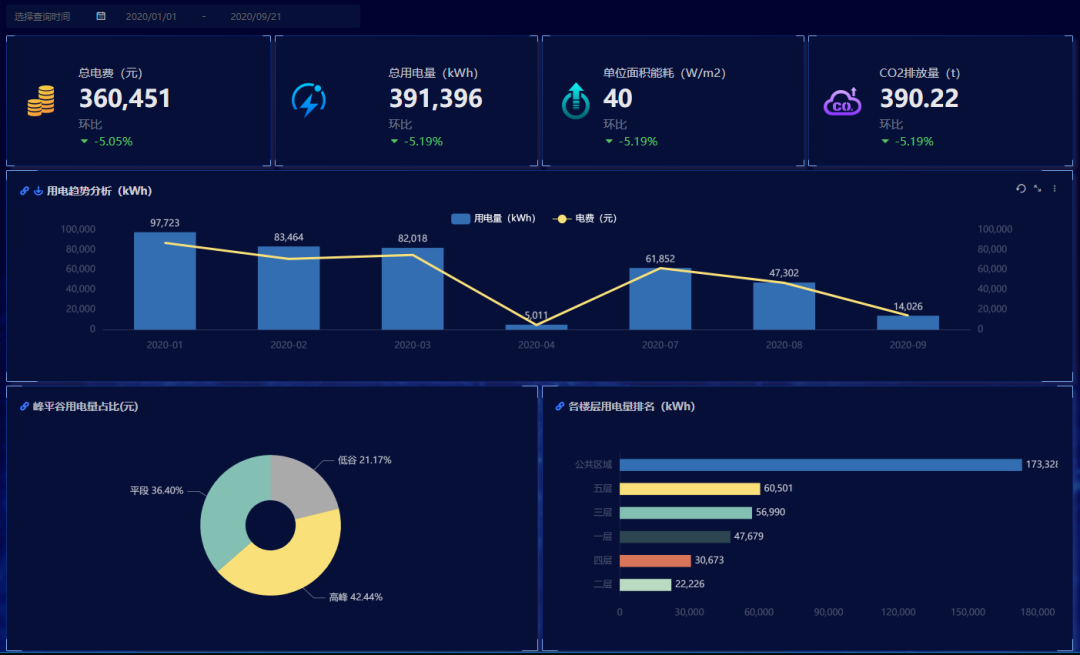 以精细化管理为核心目标驱动,采集汇总系统的能耗数据,上传到能源管理中心进行归纳、分析和整理,在整体功能上体现对建筑能源的来源、流向和使用各个环节的监测、统计及分析。通过以数据为驱动的数字化管理,能够实现能源系统一体化运作和集中管理,实施有效的能源管理和能源数据分析,建立客观的以数据为依据的能源消耗评价体系,掌握建筑的整体能效水平,追踪减排策略效果,并直观展示低碳成果。