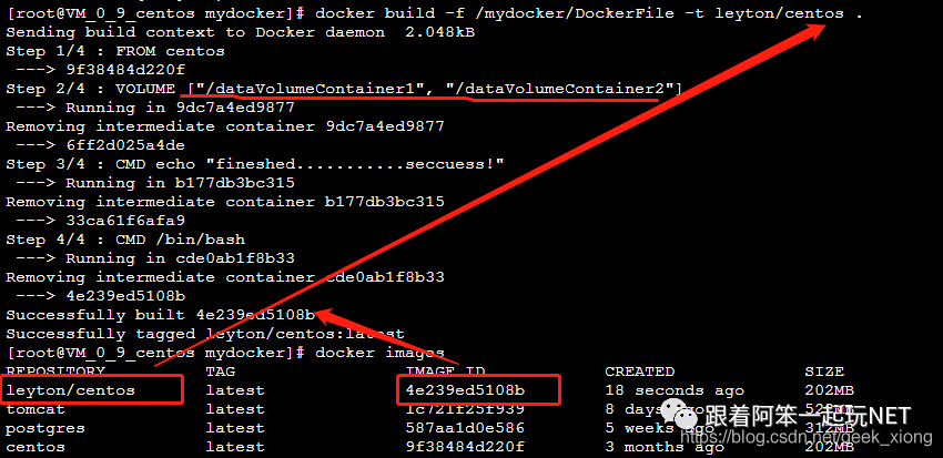 别忘了最后的点(名称是为新的镜像起一个名字)docker build -f DockerFile路径 -t 名称 .docker builld -f mydocker/DockerFile -t leyton/centos ..
