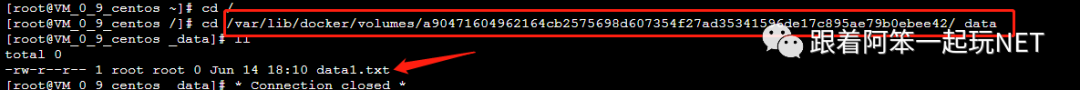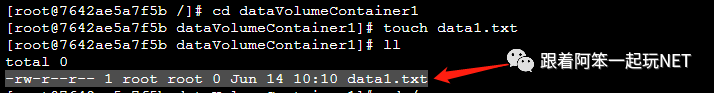 在数据卷容器中创建一个文件,看宿主机上是否同步