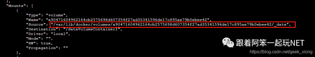 我们怎么在宿主机上找到共享的位置呢?可以利用inspect查看一下: