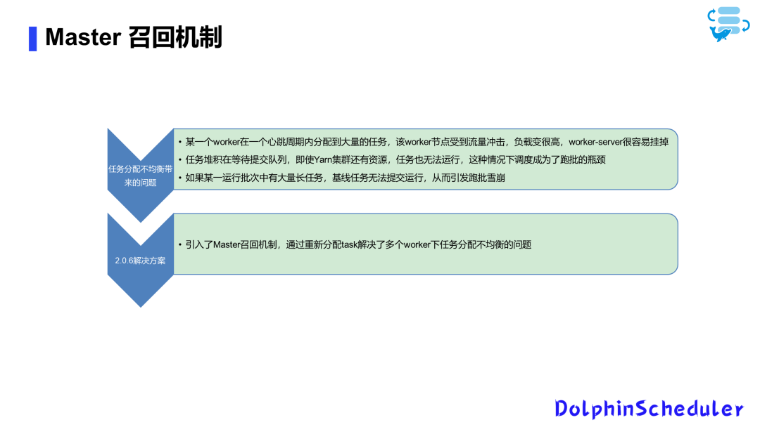 为解决这一问题,我们引入了master召回机制,通过重新分配任务来解决任务分配不均衡的问题。