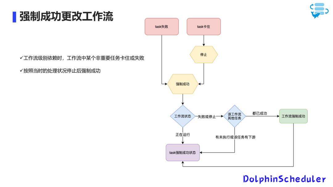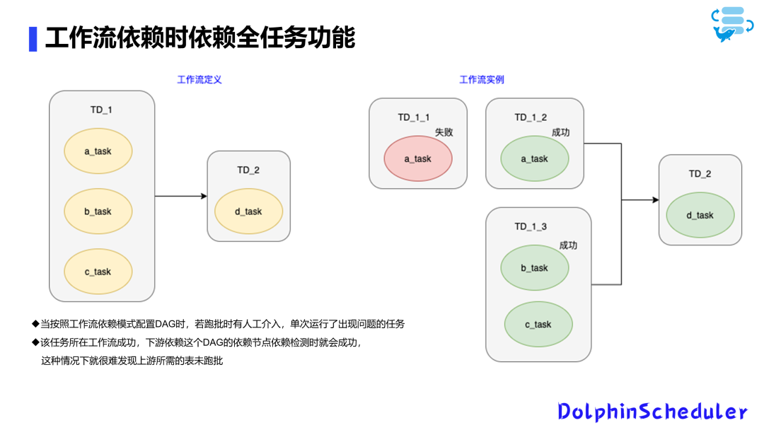 在之前的版本中,我们遇到过某个任务需要人工介入的情况,然而其所在的工作流成功,导致下游依赖的任务得以执行,而上游所需的任务却未执行。