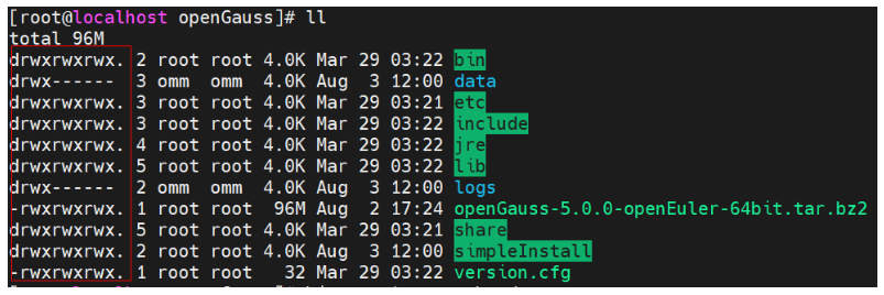 chmod -R 777 /opt/software/openGauss/