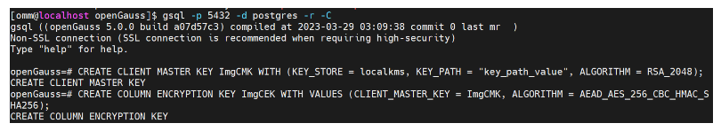 CREATE CLIENT MASTER KEY ImgCMK WITH (KEY_STORE = localkms, KEY_PATH = "key_path_value", ALGORITHM = RSA_2048);
