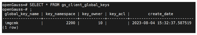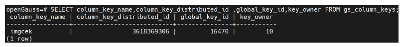 SELECT column_key_name,column_key_distributed_id ,global_key_id,key_owner FROM gs_column_keys;