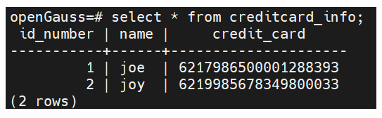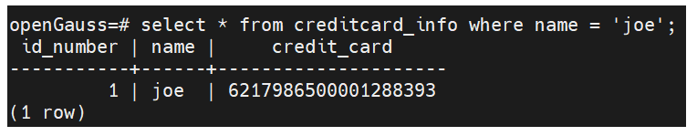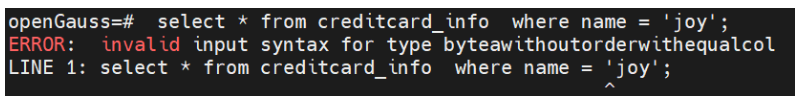 注意没有带“-C”参数,则查询的数据是密文,且无法在WHERE条件中使用加密列。
