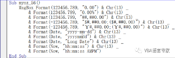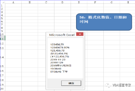 代码解析:mynz_56过程使用消息框显示格式化后的数值、日期和时间。