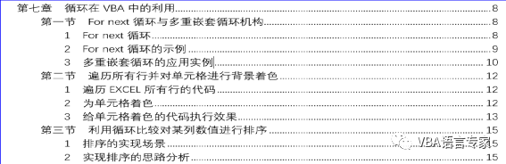当我们学到这里,下一步就有必要了解VBA的循环结构了。在VBA的语言体系中,我们要了解三种循环For each; Do while; For next.这三种循环是我们掌握VBA的重中之重。FOR EACH 循环我常称之为遍历,这个循环结构可以遍历某个集合的所有元素,当我们不想知道循环的次数以及集合大小的时候,就可以用这个循环结构。这个结构是简单的,也是非常实用的。只要明确了这个集合,明确了这个集合的元素,就可以使用这个结构。DO WHILE循环有着不同的表示形式,但是万变不离其中,要有一个用于判断循环是否继续执行的条件,这个条件是非常重要的,特别注意:在工作表中往往利用是否为空格作为一个基本的条件语句。 DO WHILE CELLS(i,1)<>””往往在我的教程中看到的非常多。当然这里的变量i要随着循环而不断地变化。FOR NEXT循环是一种非常简单的结构,利用一个FOR I=1 TO 10类似的结构指定循环的次数操作。在某种意义上讲,上述的三种循环是可以相互转换的,但大多数情况下我们不建议您去考虑这三种循环的转换。那么,什么情况下用哪种循环结构,就要靠大家对VBA的理解了。只要多利用,其中的道理是不难发现的,很多是熟能生巧的。在前面讲过,这三种结构是我们掌握VBA基础的重中之重。我们要掌握这种语言,就要从这些基础语句入手,认真理解,领会其中的含义。看教程的实例中是如何组织这些语言的,最好能养成自己的应用习惯,这种习惯非常重要,在自己调试代码时是非常有用的。再次强调一遍,要养成自己书写代码的习惯,这是十分有益的。在我的第七套教程中接着讲了错误处理、字符串操作、日期和时间、事件、数组应用,函数过程等。