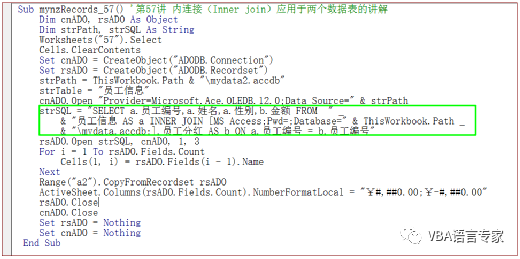 Sub mynzRecords_57() '第57讲 内连接(Inner join)应用于两个数据表的讲解