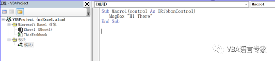 1:打开一个新工作簿并将其另存为myExcel.xlsm(启用 Excel 宏的工作簿)