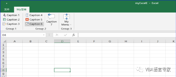 实现这个功能是我提供的myExcelA.XLSM文件,正确加载后,会在“主页”选项卡的末尾看到一个新组“Group1”,如下截图:
