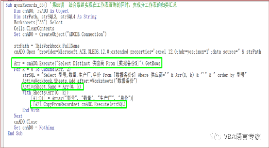 2 工作表查询的同时,完成分工作表归类汇总的代码及代码解读