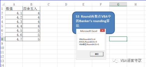 第五十三讲 Round函数在VBA中的Banker's rounding算法与普通“四舍五入”算法的比较