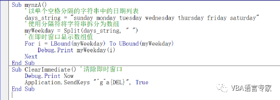 2) Split(days_string, " ") 是利用Split函数将字符串分隔成数组。