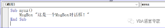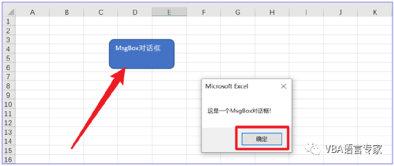 代码解读:上述代码我们将提示给用户一条信息:“这是一个MsgBox对话框!”,这条信息是在一个弹出的窗体上展现给我们。我们可以在窗体上点击“确定”按钮,表示我们(用户)已经看到这个信息,点击按钮反馈后,是反馈给程序这个信息。
