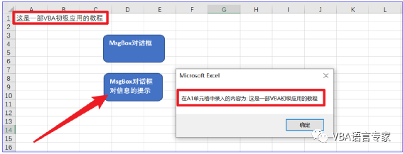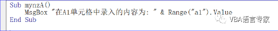 MsgBox "在A1单元格中录入的内容为: " & Range("a1").Value
