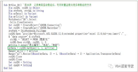 Sub MyNZsz_36() '第36讲 记录集赋值给数组后,利用转置函数处理多维数组的方法
