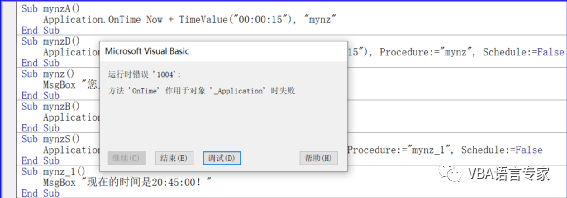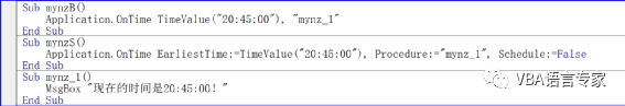 Application.OnTime TimeValue("20:45:00"), "mynz_1",我们为了取消这种预设可以用下面的代码: