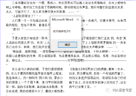 2 如何利用VBA显示文档的节数,及每节的内容?