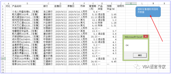 教程共两册,八十四讲。今日的内容是专题十:“利用QueryTables抓取网络数据”:VBA中QueryTables提取在售理财项目数据