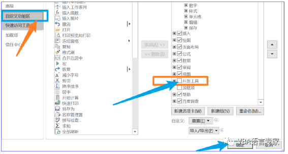 2)在对话框右侧的“自定义功能区”下,选择“主选项卡”(如果需要)。