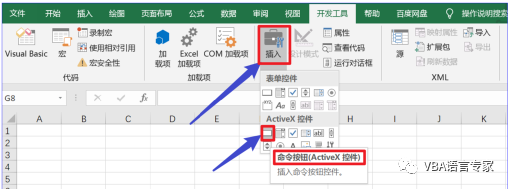 2) 在“ActiveX控件”组中,单击“命令”按钮。