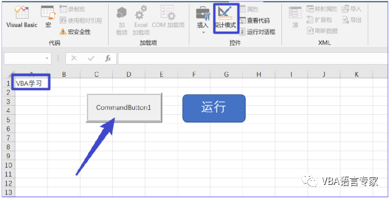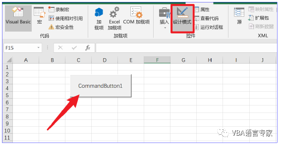 6) 单击工作表上的命令按钮(确保取消选择“设计模式”)。