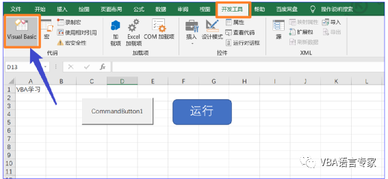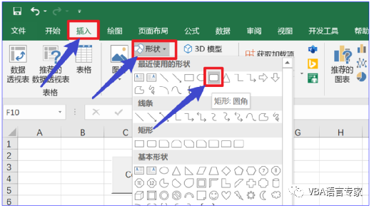 我这里给大家介绍两种运行按钮的添加方法,其一是用控件按钮,其二是自选图形按钮。我们先来看第一种方法: