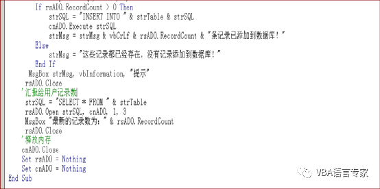 strMsg = strMsg & vbCrLf & rsADO.RecordCount & "条记录已添加到数据库!"
