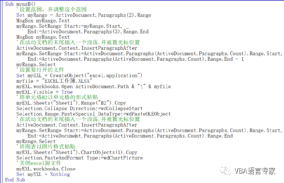 '将单元格B2以单元格的形式粘贴wdPasteOLEObject是单元格的格式,如果是文本的格式可以用wdPasteText。