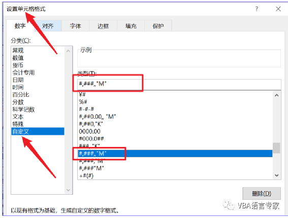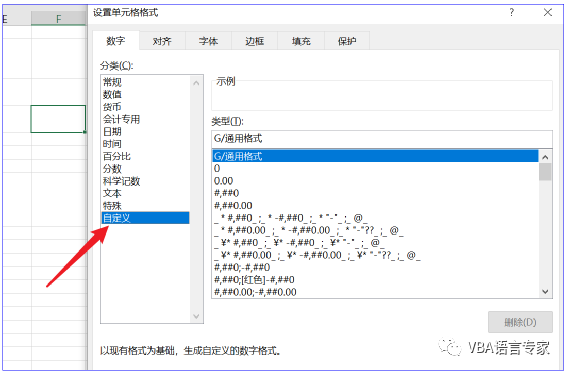 上述写法要区分于我们利用Excel界面直接自定义格式的写法,如在excel自定义格式设置中是如下截图: