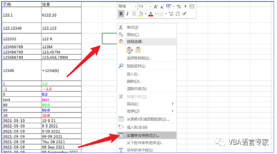 1)右键单击要格式化的单元格