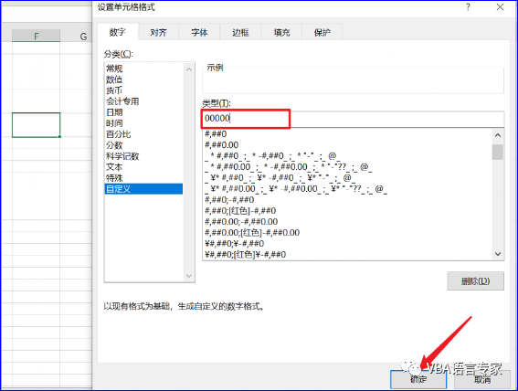 4)在类型字段中,插入格式代码: